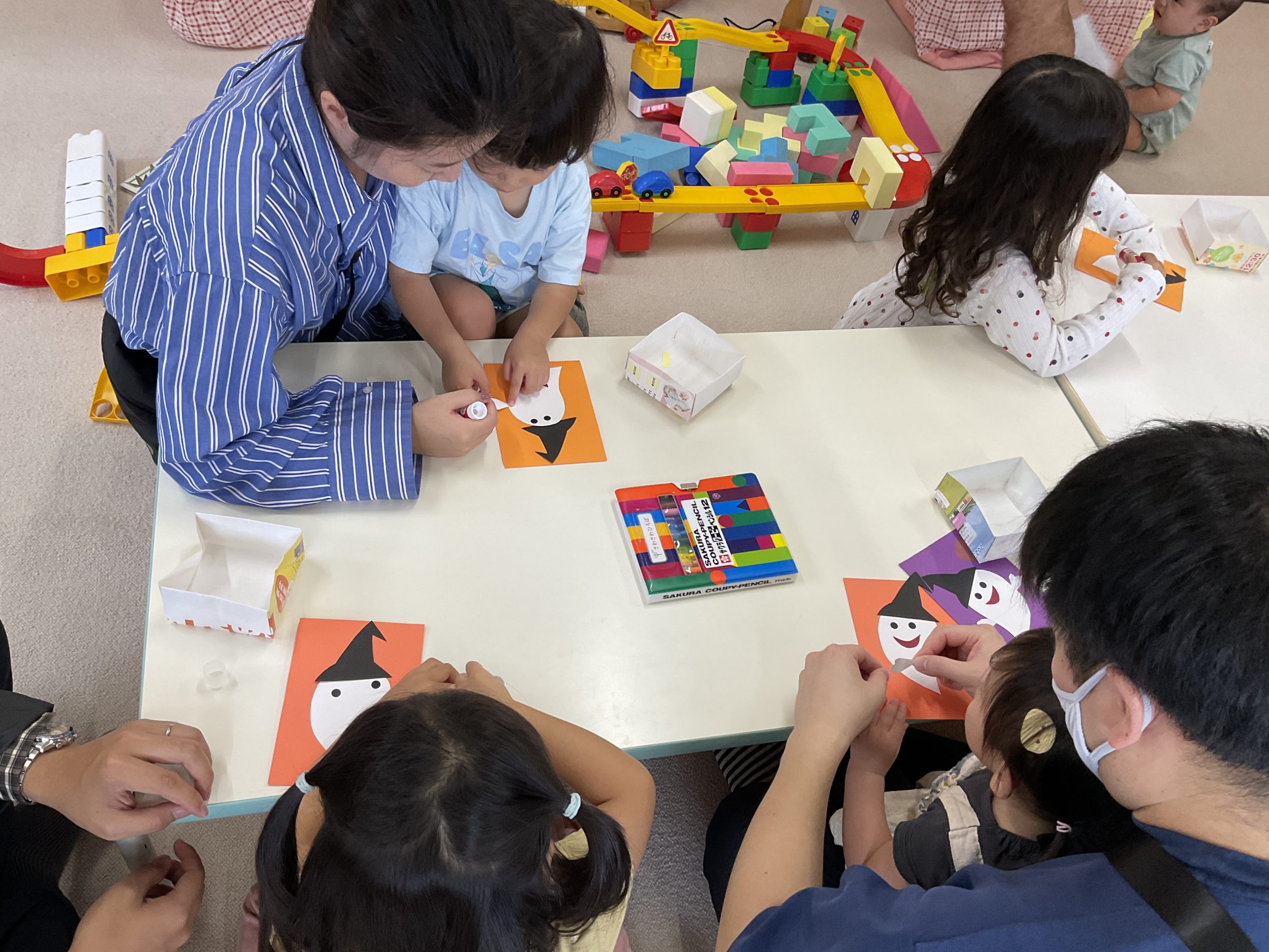 毎月第2土曜日はさわちゃんday。小さなお子さんでもできる工作をします。今日はハロウィンのおばけを作りました。