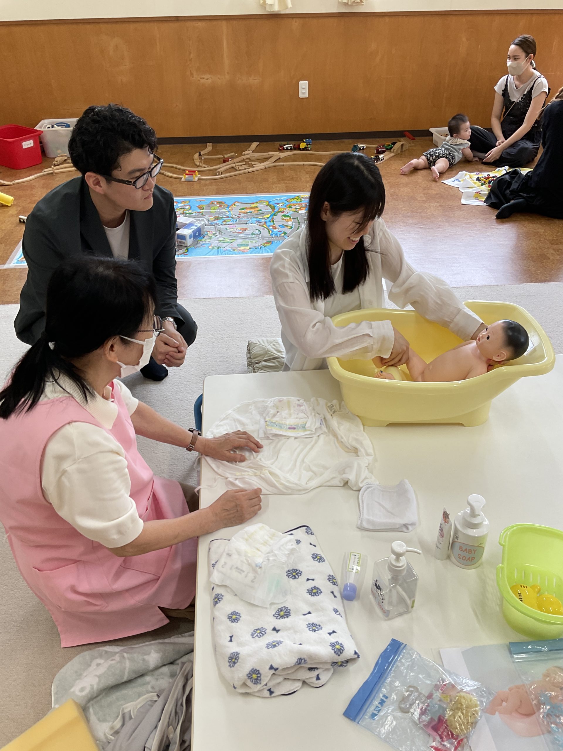 沐浴体験では、泡沐浴の指導も受けました。赤ちゃんに会えるのが楽しみですね。
