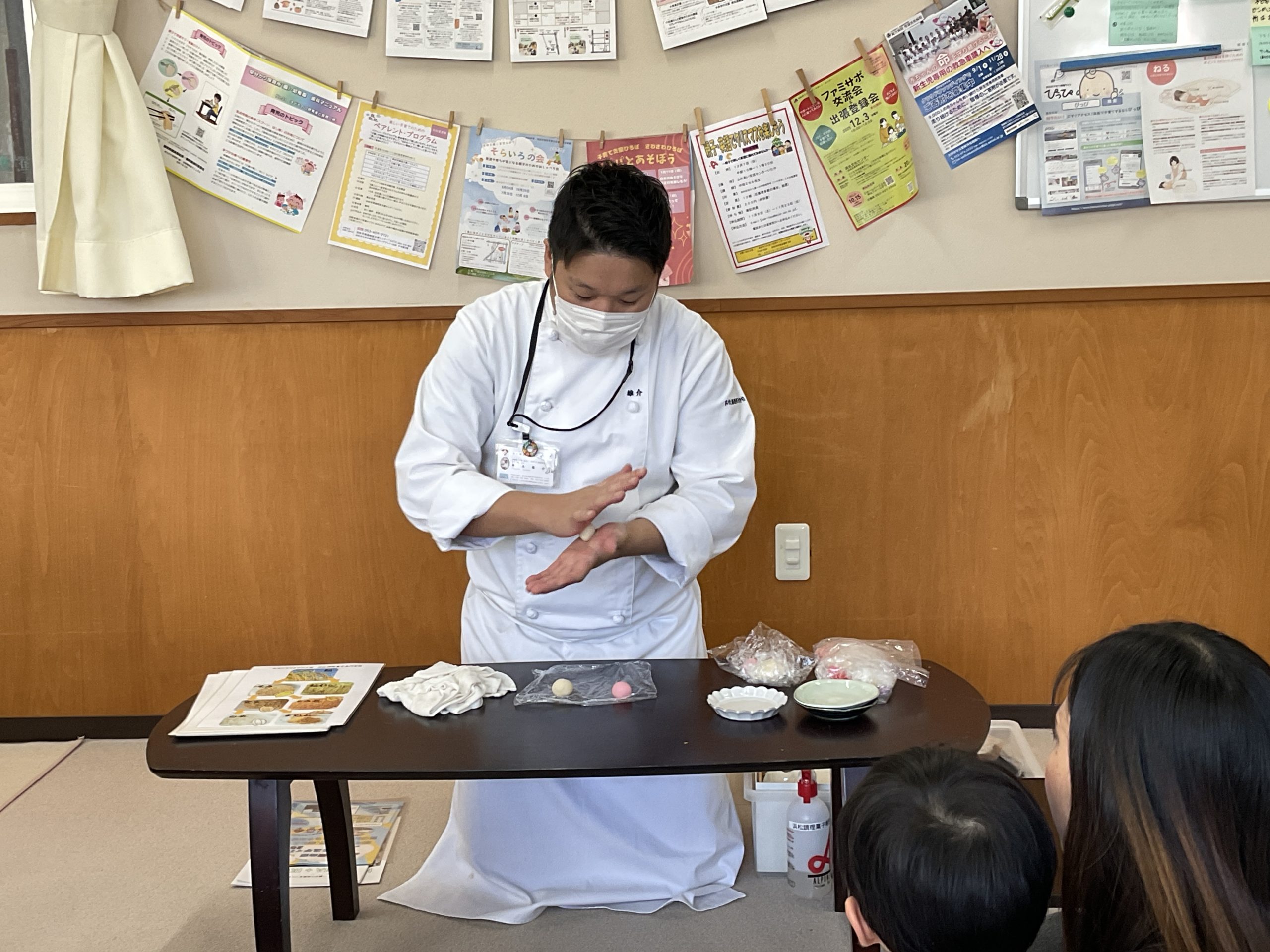 今日は、広沢町にある浜松調理菓子専門学校の鈴木先生を講師にお招きして、「パンダの練り切り」作りを体験しました。