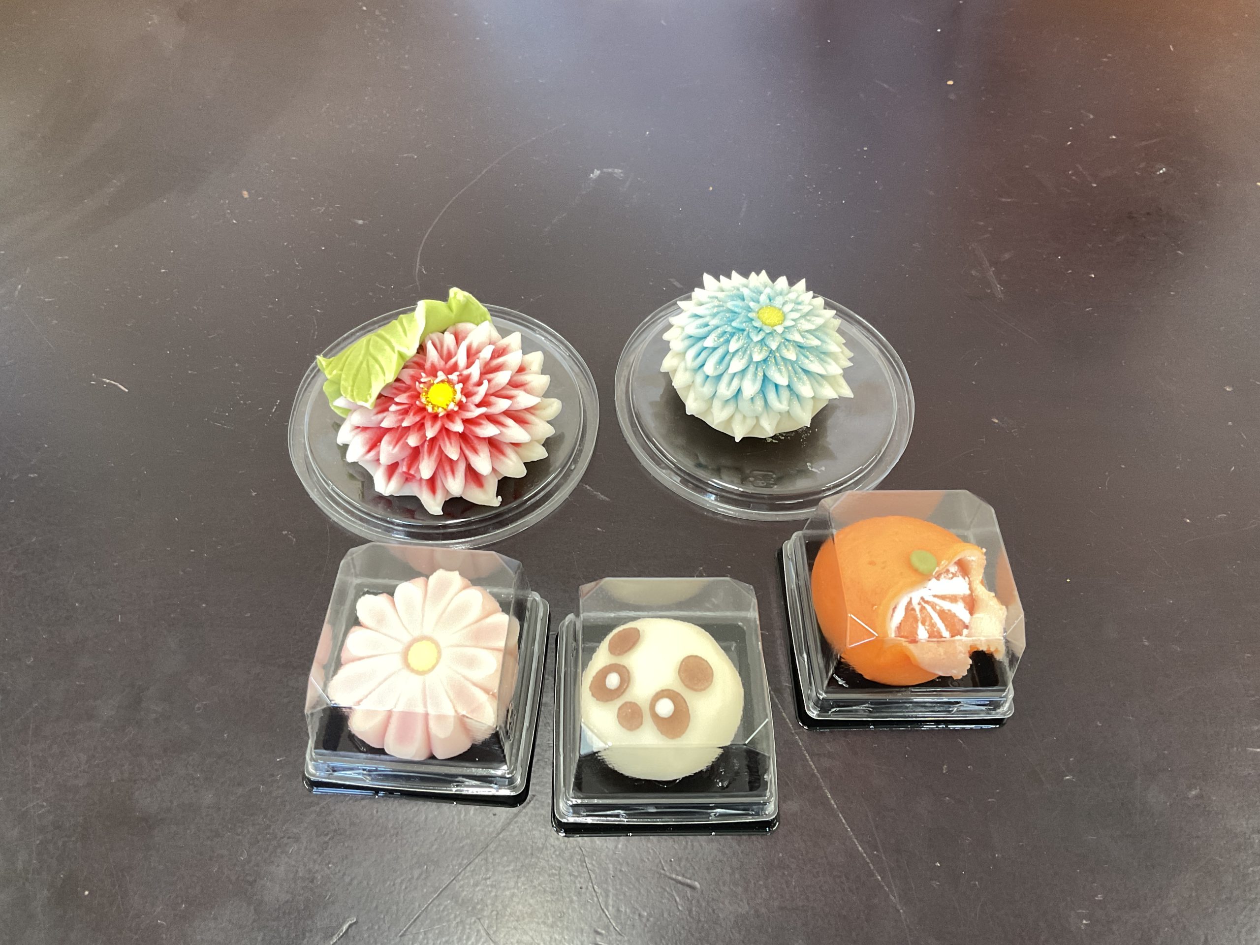 先生より、和菓子の成り立ちや種類についての説明を受けました。「菊の花」