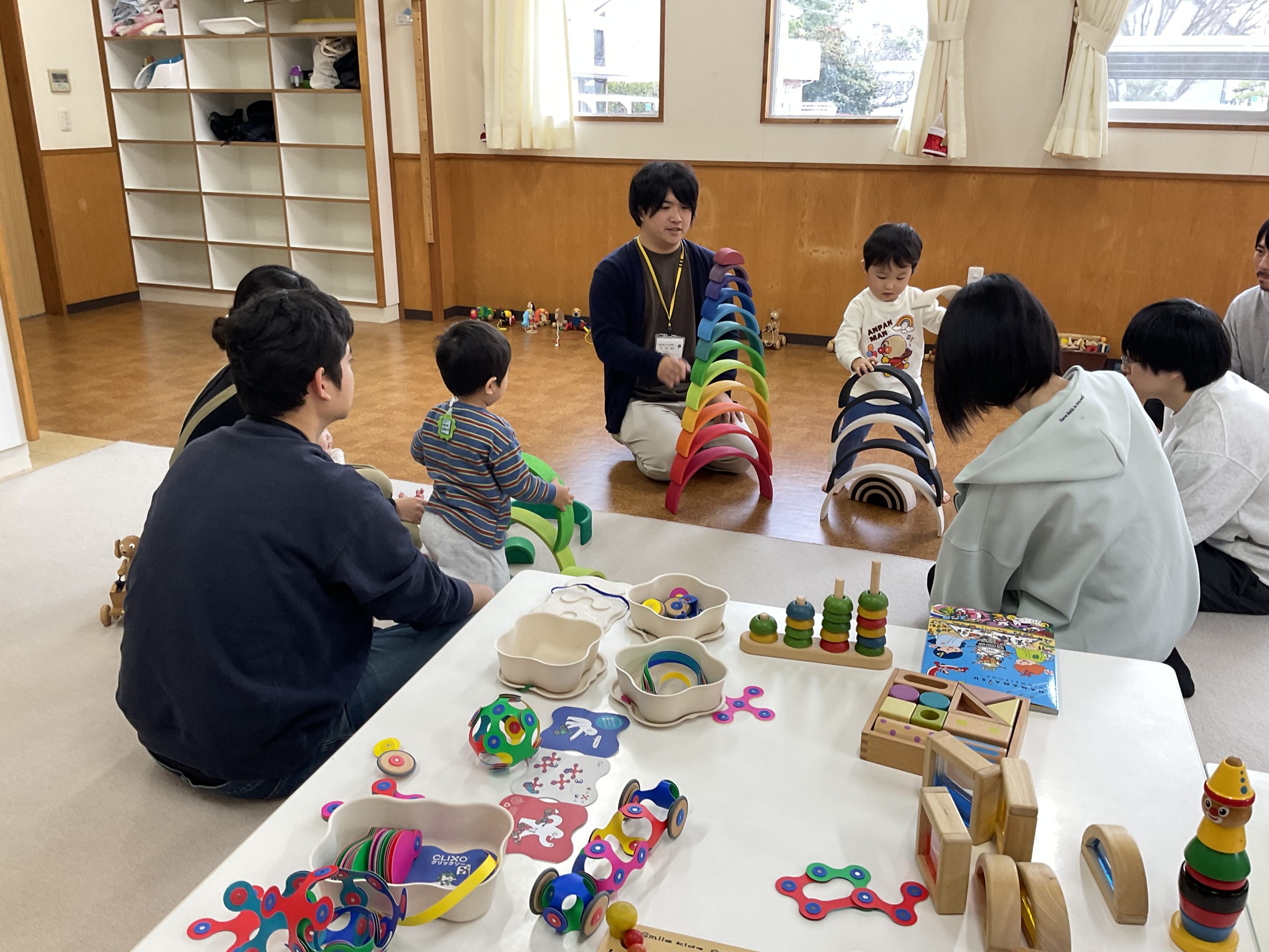 今日は平野さんが木のおもちゃをたくさん持って来てくれて子ども達は大喜びで遊びましたね。