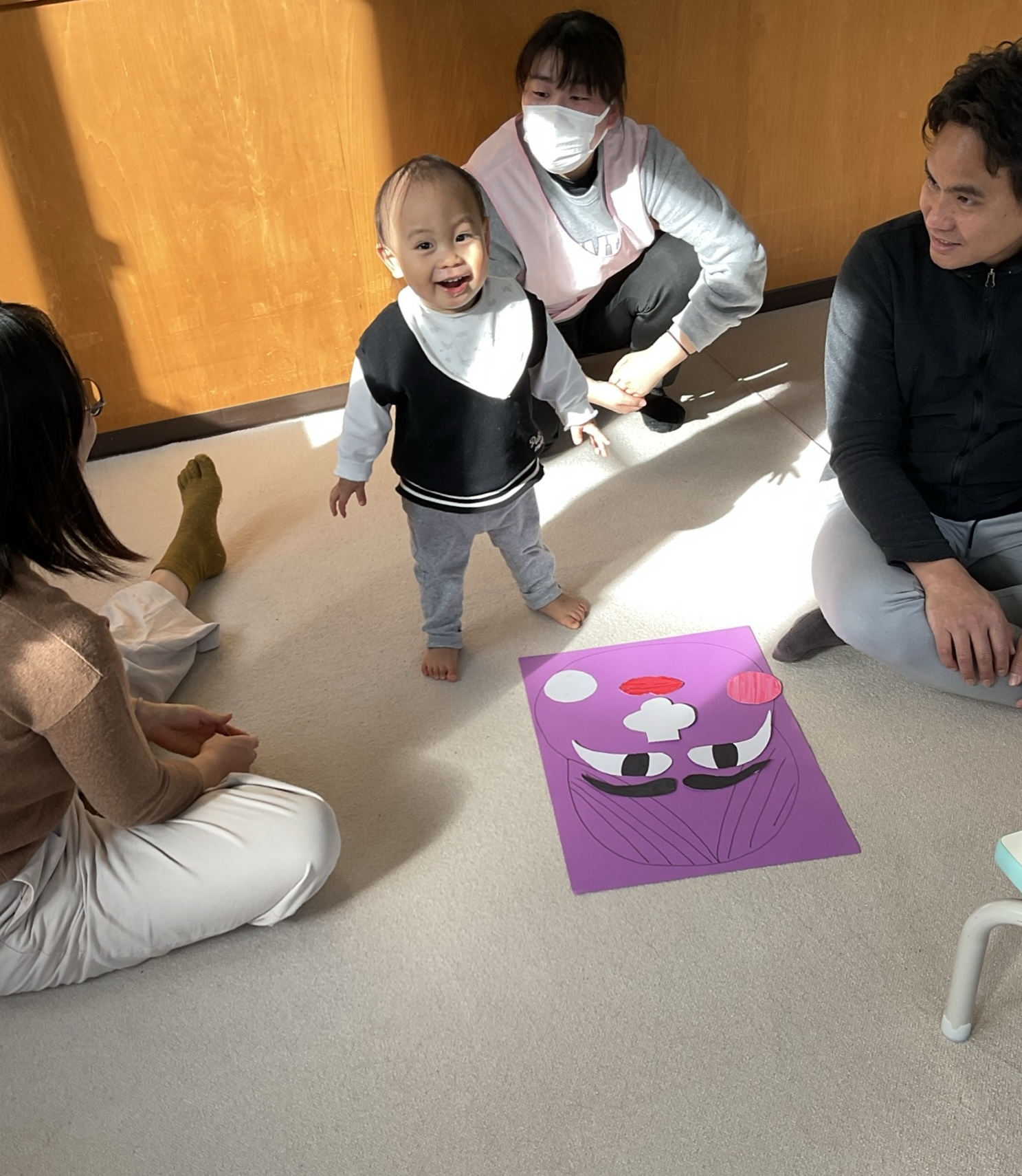 人生初めての「福笑い」。何だかとってもおもしろい顔だね。