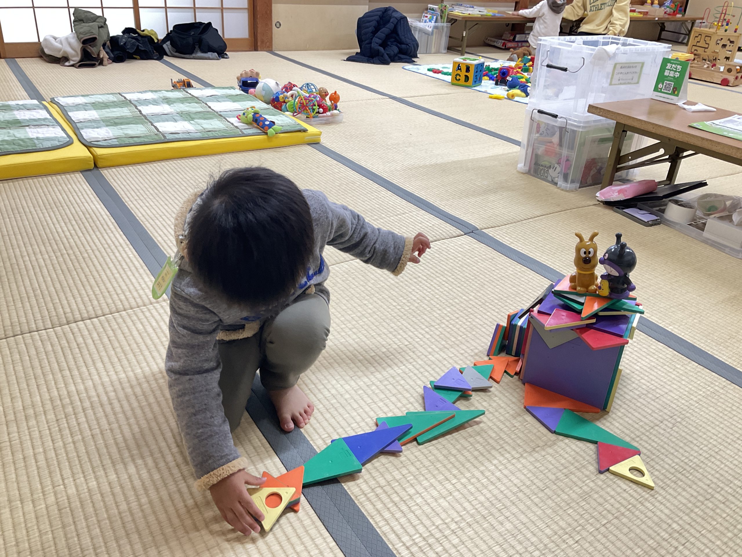 お家から、道を作っていき「パタンパタン」と磁石がくっつく音も楽しんでいましたね。