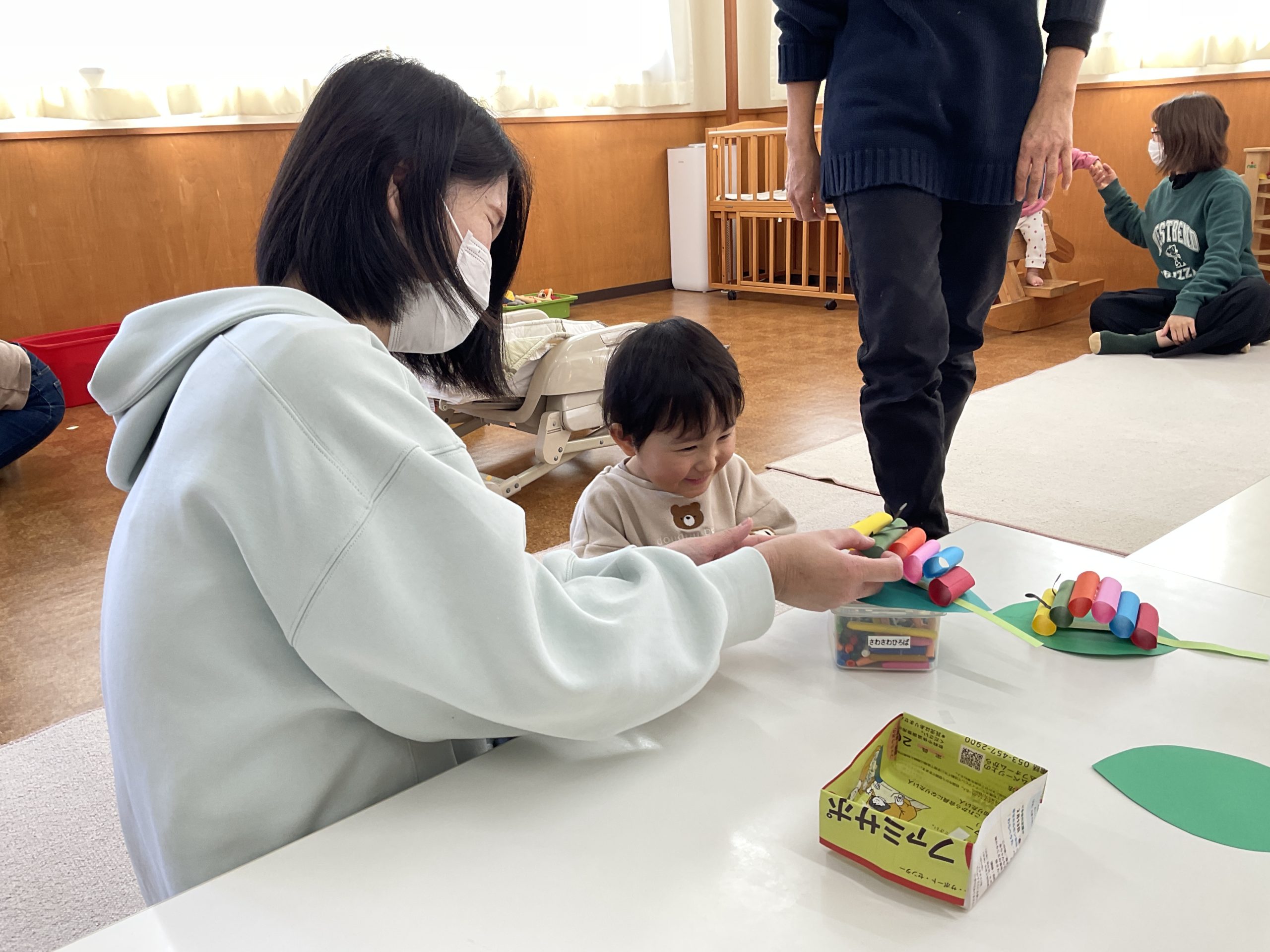 かわいい「いもむしおさんぽ」ができました。今日は午後3時~4時もできます。